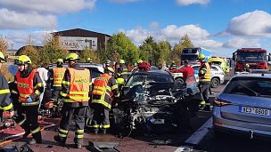 Hasiči zasahují u hromadné dopravní nehody na silnici 7 u obce Křimov nedaleko Chomutova. Srazila se tam čtyři osobní auta. Na místě jsou zranění, kterým pomáhají…