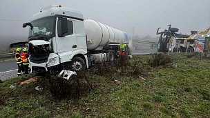 Na hlavním tahu mezi Mostem a Plzní došlo k havárii nákladního automobilu. Naštěstí se nehoda obešla bez zranění.