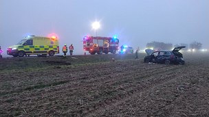 Tři jednotky požární ochrany (HS Podbořany, JSDH Lubenec a Jesenice) zasahují u dopravní nehody dvou osobních automobilů se zraněním v Blatně na Lounsku. V důsledku čelní srážky skončily oba automobily mimo vozovku v poli. ZZS odvezla dvě zraněné osoby.