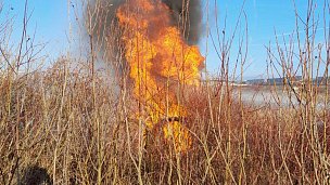 U požáru hromady štěpky zasahují v obcí Březno na Chomutovsku profesionální a dobrovolní hasiči.
