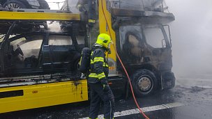 Ve 12:00 přijalo operační středisko oznámení o požáru kabiny kamionu na 80. kilometru dálnice D8 ve směru na Ústí nad Labem. Na místo události vyjely tři jednotky požární ochrany. Požár, který se z kabiny rozšířil na převážené automobily, se zasahujícím hasičům podařilo lokalizovat ve 12:30.