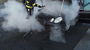 U požáru motorového prostoru osobního vozidla zasahují v Lovosicích na Litoměřicku profesionální hasiči z místní hasičské stanice.